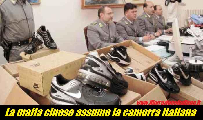 A conferma dell'associazione tra mafia locale e mafia cinese vi riportiamo i seguenti fatti. In questi giorni i finanzieri di Napoli hanno arrestato 34 persone. Al momento 7 sono in carcere e 27 ai domiciliari. I soggetti in questione sono stati ritenuti appartenenti a 3 organizzazioni criminali colluse tra loro che gestivano un cospicuo mercato del falso. I cinesi hanno letteralmente assunto la camorra locale per agevolare l'importazione dalla Cina di prodotti contraffatti. Distribuivano in Italia grazie a negozi compiacenti che a loro volta venivano gestiti dalla manovalanza delle organizzazioni con prestanome. Sono state rinvenute ingenti quantità di prodotti contraffatti di marchi noti. Nike, Adidas, Gucci, Louis Vitton, Dolce e Gabbana, La Martina, Ralph Lauren, Burberry, Hogan e Blauer. Gli inquirenti hanno posto sotto sequestro beni mobili e immobili per oltre 8 milioni di euro.
